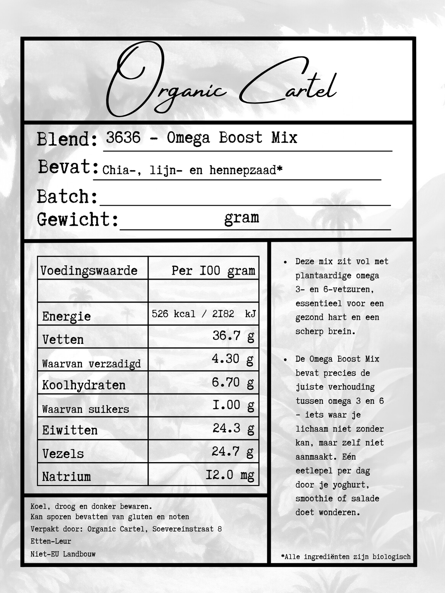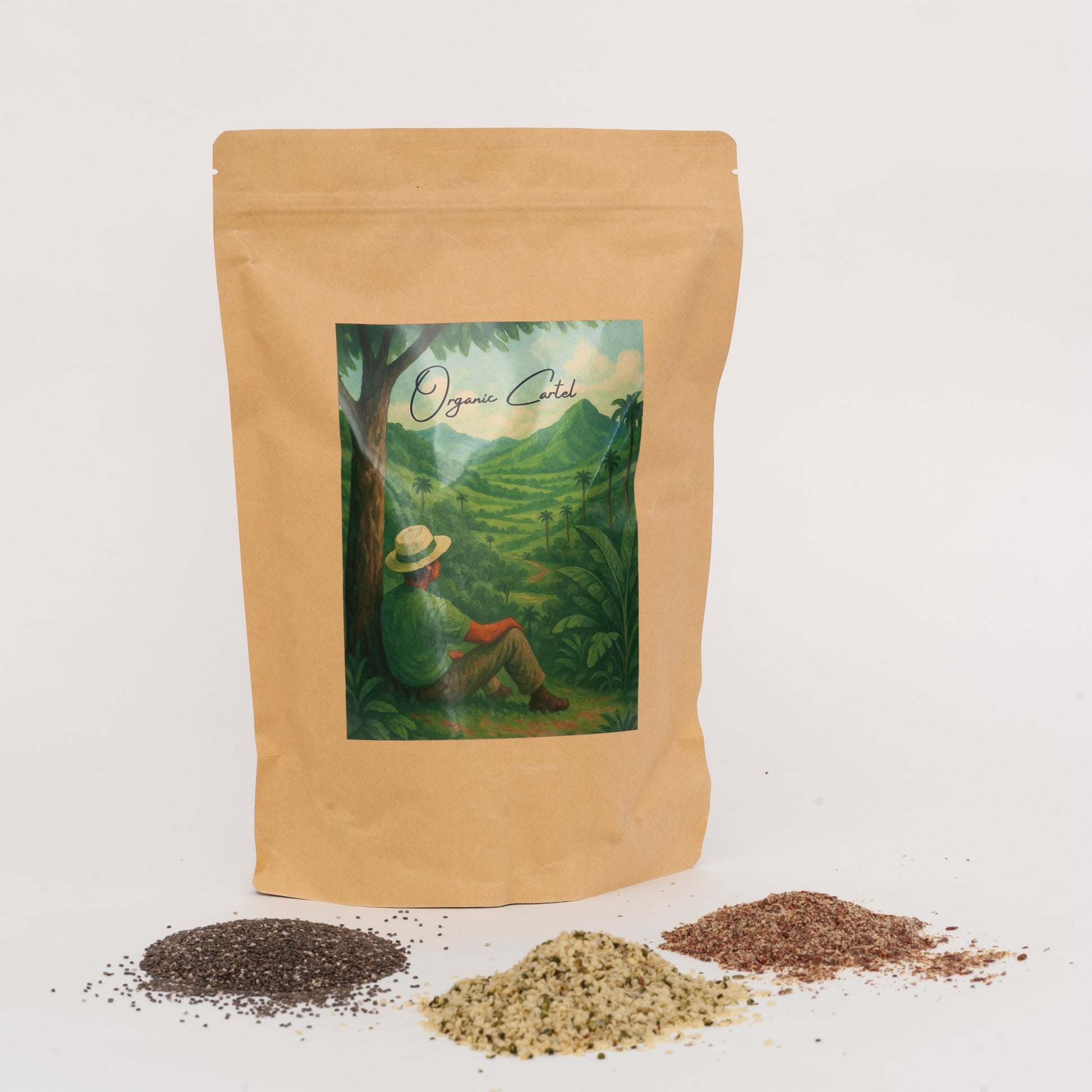 Chia, lijnzaad en hennepzaad vormen samen een bron van plantaardige omega 3- en 6-vetzuren. Essentieel voor een gezond hart en een scherp brein. Je lichaam kan deze vetzuren niet zelf aanmaken – maar deze mix bevat precies de juiste verhouding. Geef je gezondheid een slimme boost, elke dag opnieuw.